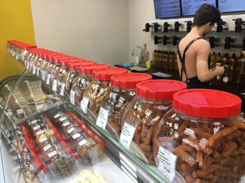 125 сортов пива, кваса, лимонада, более 100 вариантов закусок от мороженого до воблы